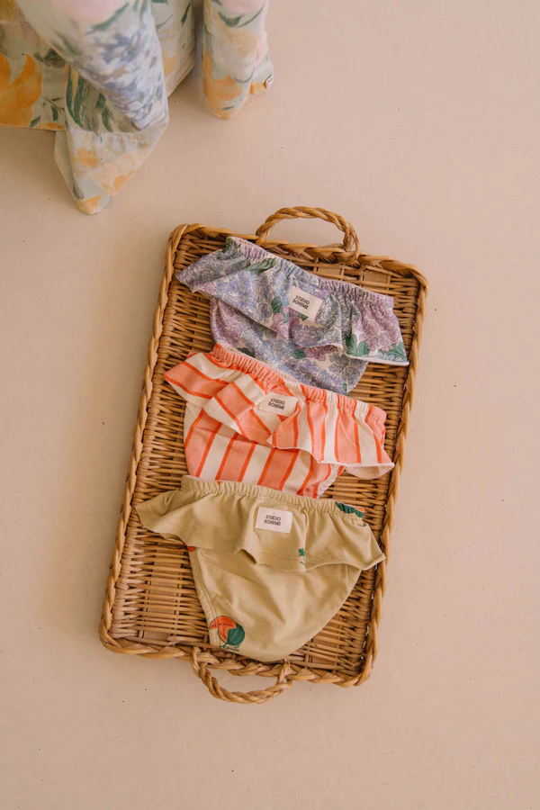 La culotte bain enfant Mimi rayures rose rouge de la marque Studio Bohème Paris est une pièce idéale pour l’été. Cette culotte bain enfant en coton biologique allie confort, douceur et style avec sa forme à volant et ses rayures intemporelles.