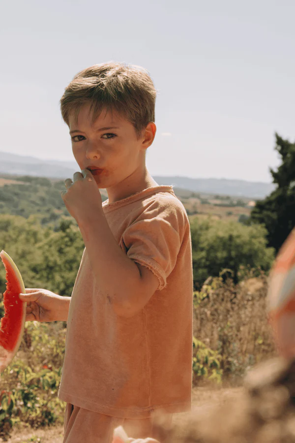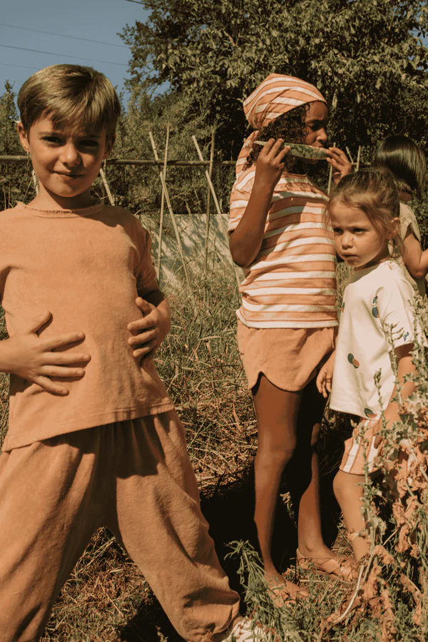 Le T-shirt Essential Terry dulce beige de la marque Studio Bohème Paris est un t-shirt doux et confortable, idéal pour le quotidien des enfants. Confectionné en jersey éponge de coton biologique, le T-shirt Essential Terry dulce beige offre un toucher agréable et une grande respirabilité.