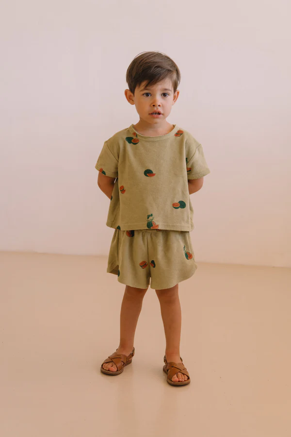 Le T-shirt Essential Terry vert golden pasteque de la marque Studio Bohème Paris est un t-shirt doux et confortable, idéal pour le quotidien des enfants. Confectionné en jersey éponge de coton biologique, le T-shirt Essential Terry vert golden pasteque offre un toucher agréable et une excellente respirabilité.