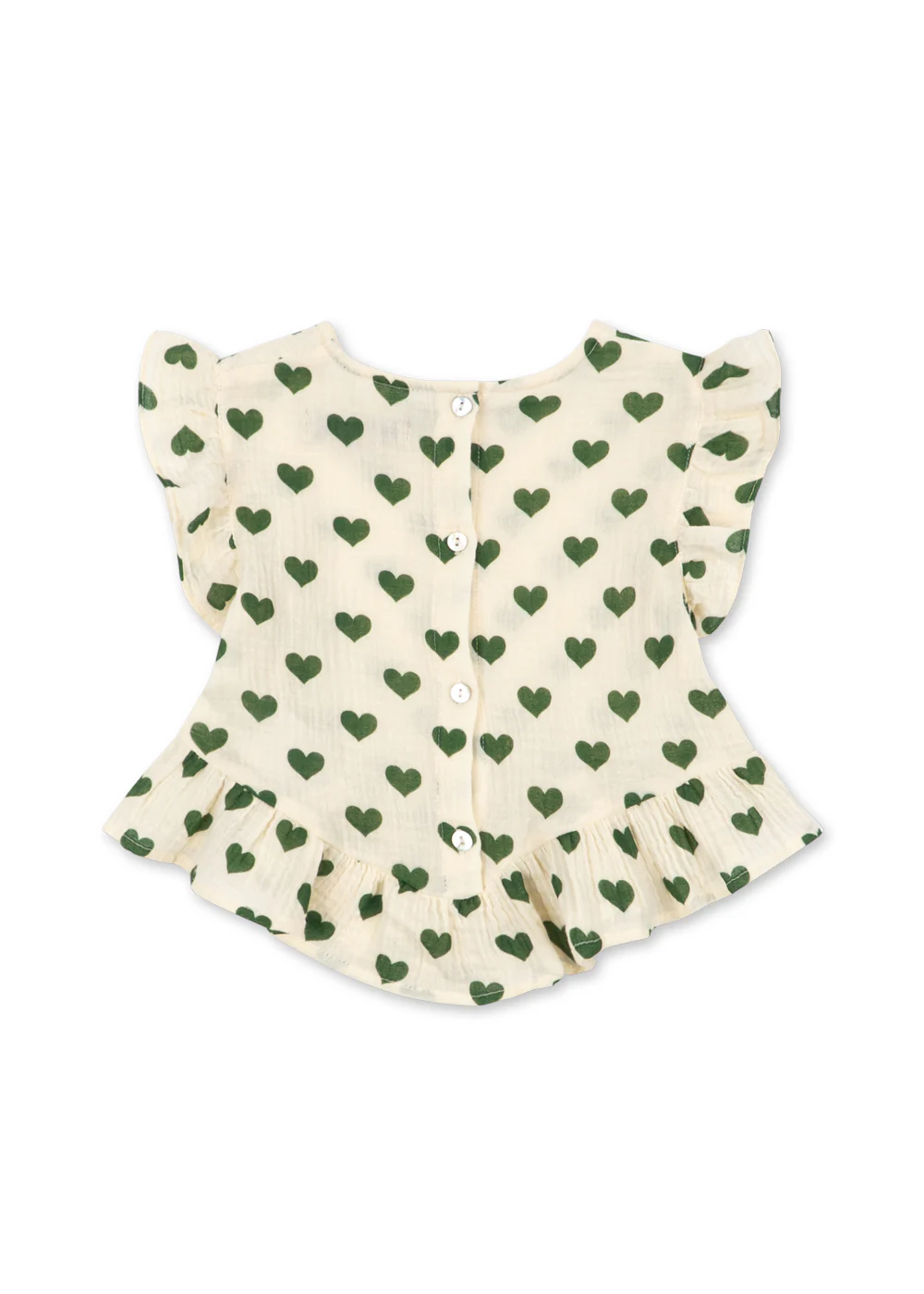 Le Top enfant coton bio Coco amour verde de la marque Konges Sløjd est une pièce idéale pour les journées ensoleillées. Confectionné en mousseline douce et respirante, ce Top enfant coton bio offre un confort optimal tout en apportant une touche élégante au vestiaire des enfants.